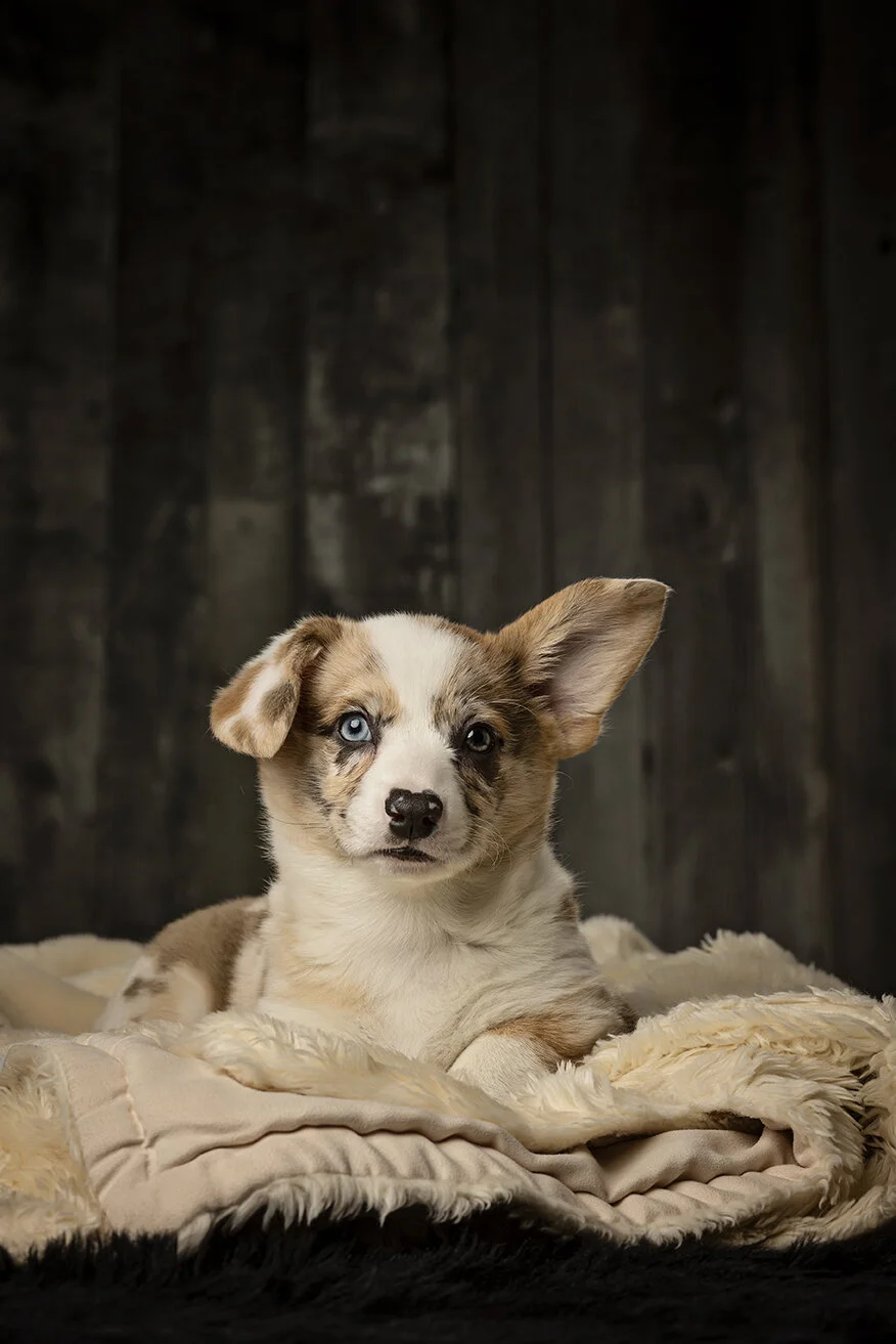 At the time of our session this past week, Grayson is a 10 week old Corgi pup. I was ecstatic to welcome Grayson with her owners Joanne and Jacob - partly because I am seriously missing my dog, (it’s been 7 months and I’m still heartbroken) and was very much looking forward to cuddling a puppy for the first time in awhile. Not only was Grayson silent, but she was giving some serious model vibes.